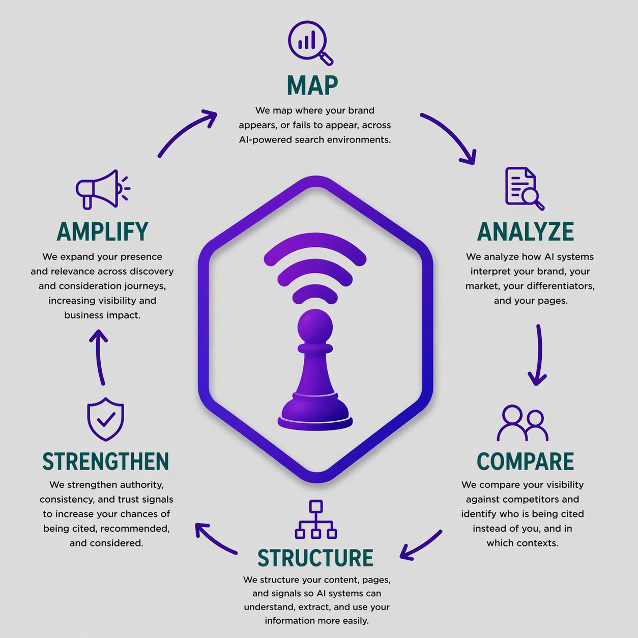 We highlight the factors reducing your visibility, clarity, and likelihood of being recommended in AI-generated responses.